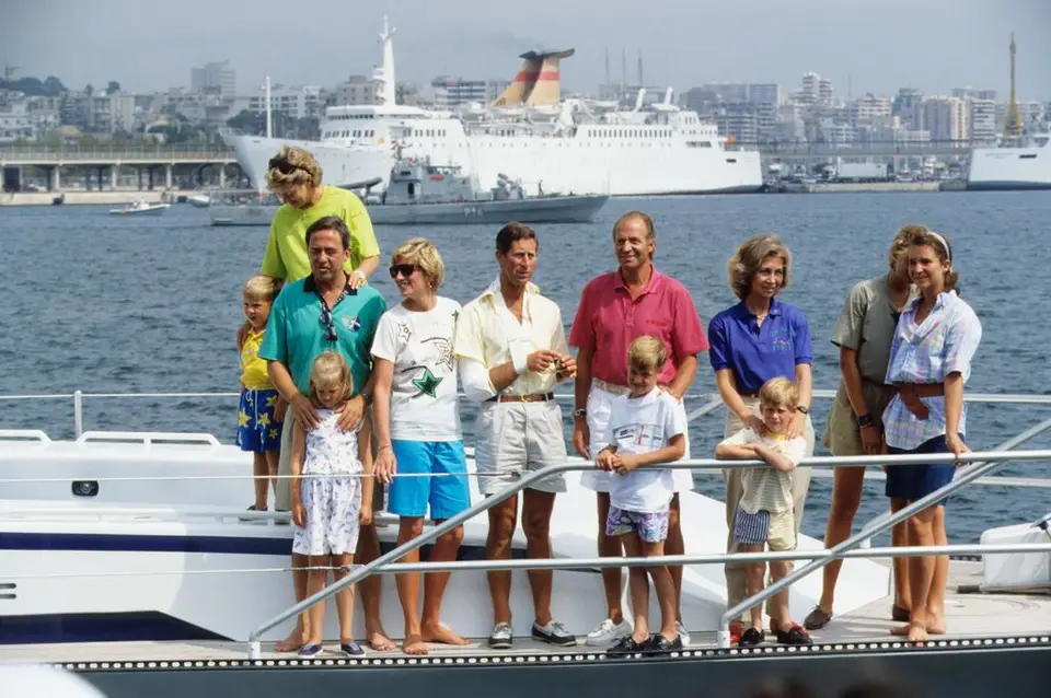 The photo was captured when Prince William was eight—the same age Prince Louis is now—while aboard a yacht owned by Juan Carlos I in Mallorca.